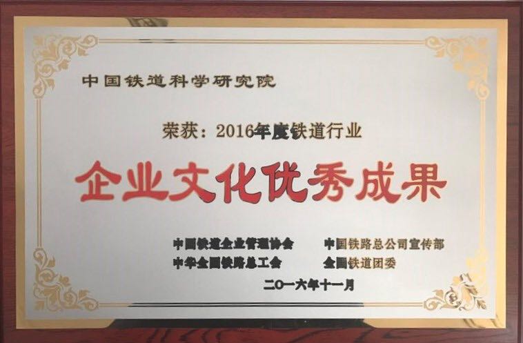 近年來,鐵科院企業(yè)文化理念開始深入人心,企業(yè)文化建設(shè)工作備受重視。作為鐵路行業(yè)唯一的多學(xué)科、多專業(yè)綜合性科研機(jī)構(gòu),鐵科院的企業(yè)文化建設(shè),立足于科技支撐、服務(wù)鐵路發(fā)展的理念,凸顯科技特色,重在體系建設(shè)。此次獲獎既標(biāo)志著鐵科院企業(yè)文化落地工作初見成效,也標(biāo)志著求是咨詢所提供的企業(yè)文化咨詢成果獲得社會和客戶認(rèn)可。2016年,鐵科院還曾獲得中國鐵道行業(yè)年度企業(yè)文化優(yōu)秀成果獎。