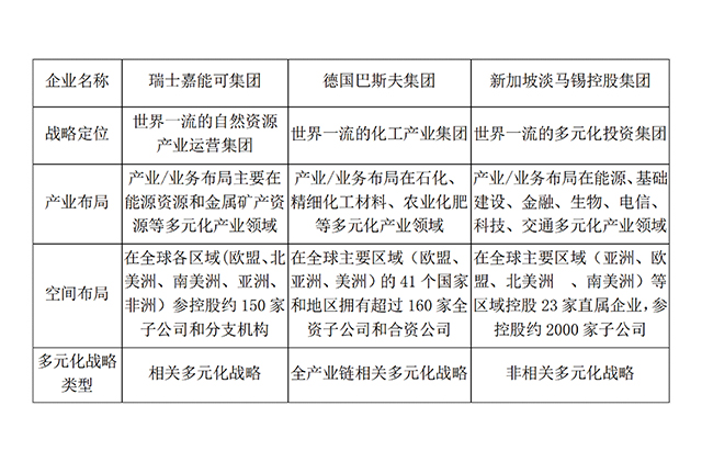 本文選取瑞士嘉能可集團(tuán)公司、德國巴斯夫集團(tuán)公司、新加坡淡馬錫集團(tuán)公司等兩類、三家世界一流標(biāo)桿企業(yè),開展多元化戰(zhàn)略的對標(biāo)分析,從中提煉出大企業(yè)集團(tuán)如何更好開展多元化戰(zhàn)略的借鑒與啟示(見下表),分述如下。