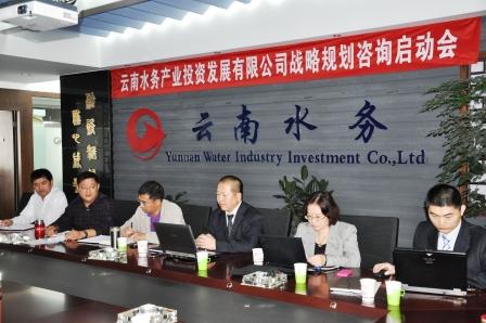 2011年10月13日,云南水務(wù)產(chǎn)業(yè)投資有限公司戰(zhàn)略規(guī)劃暨整體發(fā)展戰(zhàn)略與業(yè)務(wù)規(guī)劃項(xiàng)目在昆明啟動(dòng)。我公司總經(jīng)理陳慶博士(右二)及求是項(xiàng)目組成員出席啟動(dòng)會(huì)。
