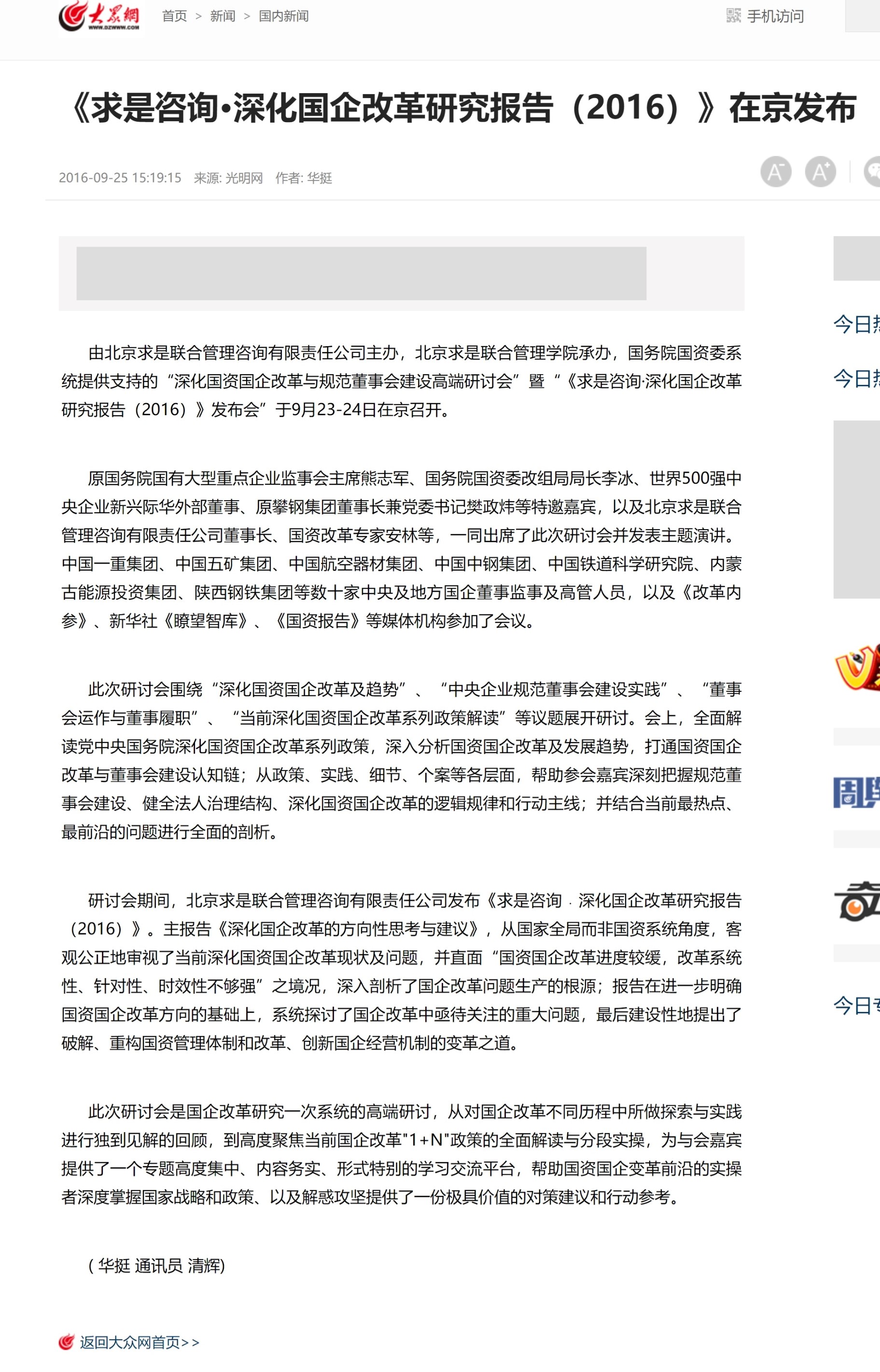 由求是咨詢公司主辦,國務(wù)院國資委系統(tǒng)提供支持的“深化國資國企改革與規(guī)范董事會建設(shè)高端研討會”暨“《求是咨詢·深化國企改革研究報告(2016)》發(fā)布會”于2016年9月23-24日在京召開。