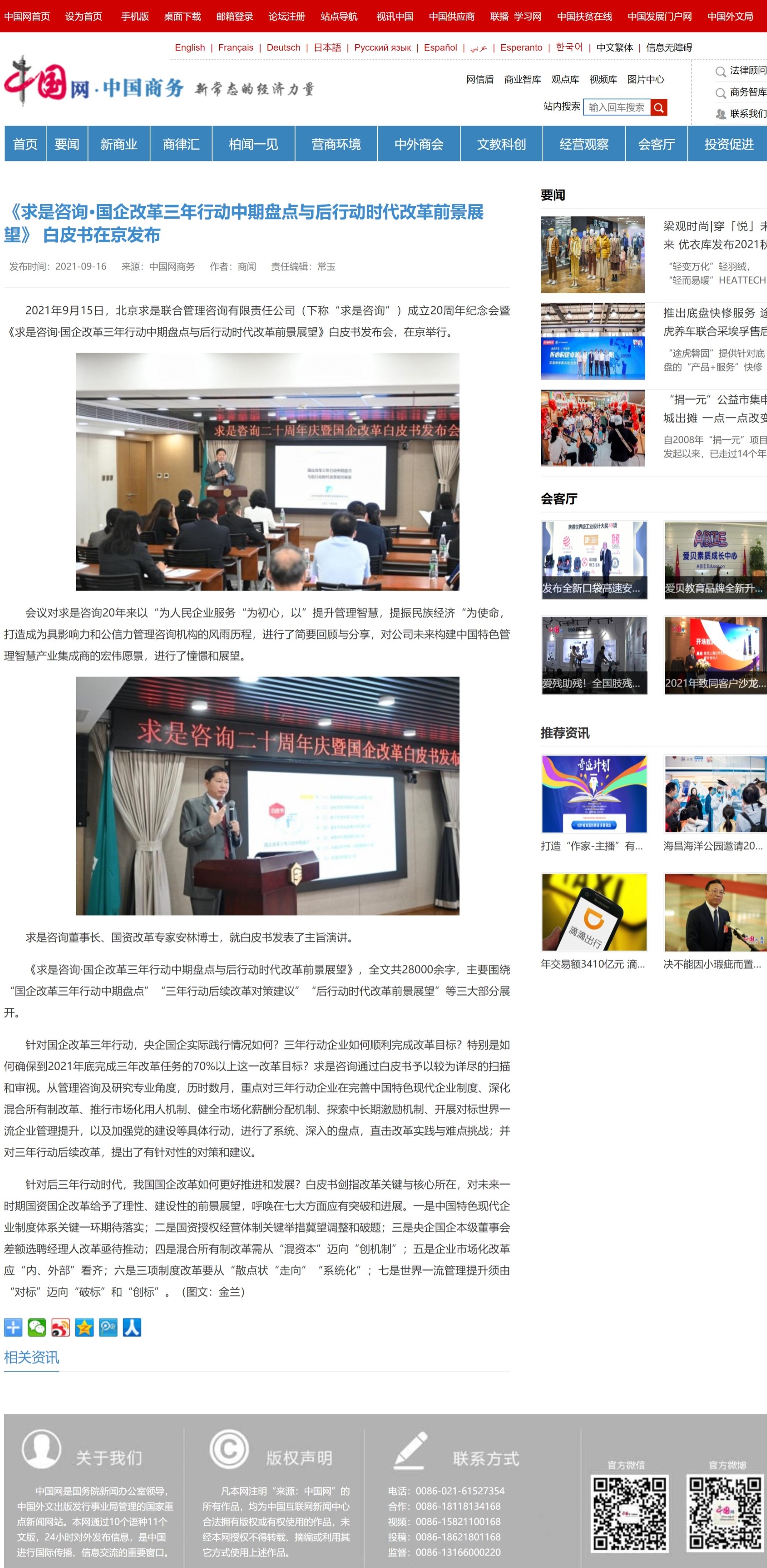《中國網(wǎng)》:《求是咨詢·國企改革三年行動中期盤點與后行動時代改革前景展望》白皮書在京發(fā)布