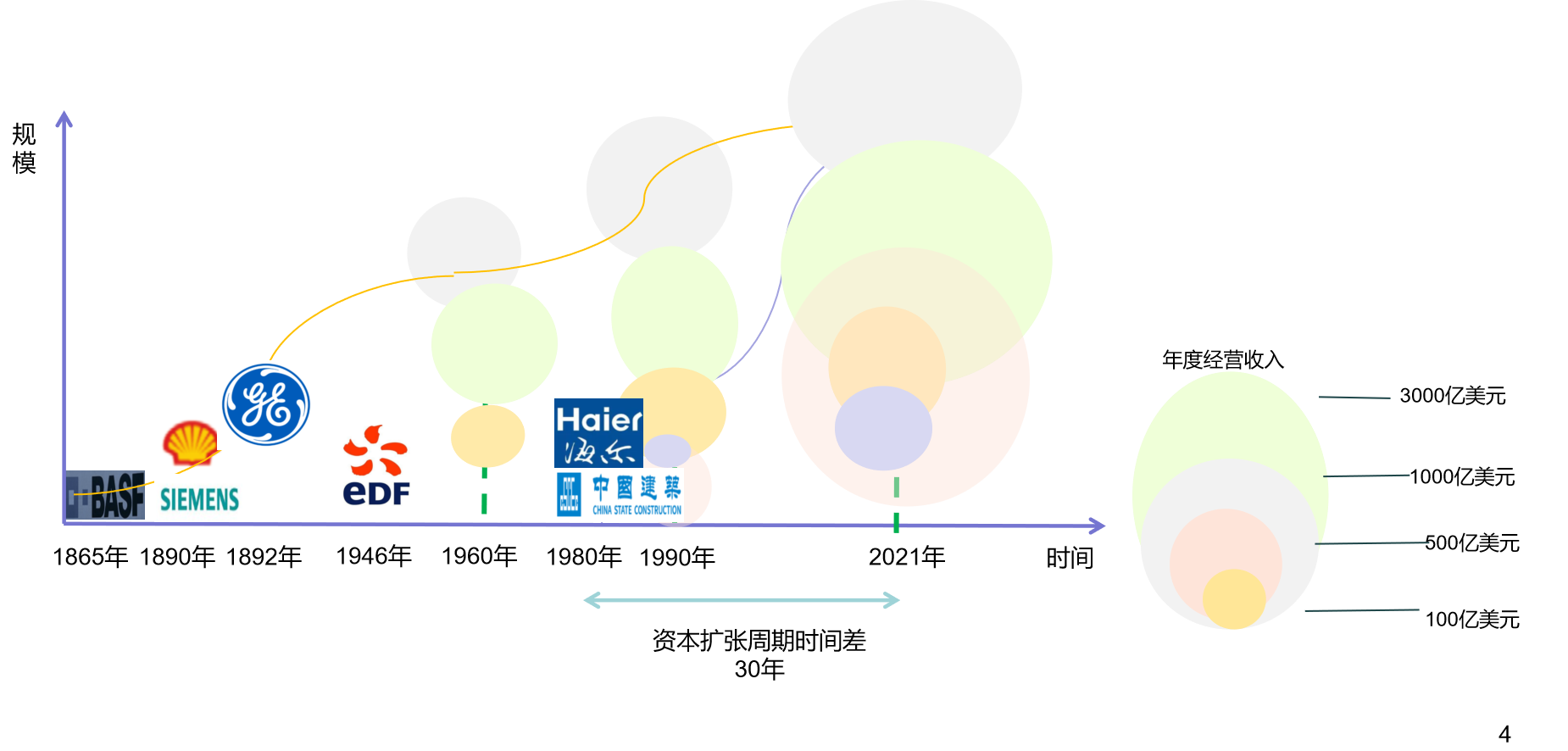 世界一流企業(yè)集團(tuán)演化圖譜分析表明,大型企業(yè)集團(tuán)一般將經(jīng)歷漫長初創(chuàng)和細(xì)分業(yè)務(wù)成長期,而后采用產(chǎn)業(yè)、區(qū)域布局的多元化戰(zhàn)略,經(jīng)營規(guī)模快速增長,對比近十年中國大型企業(yè)集團(tuán)規(guī)模快速增長。