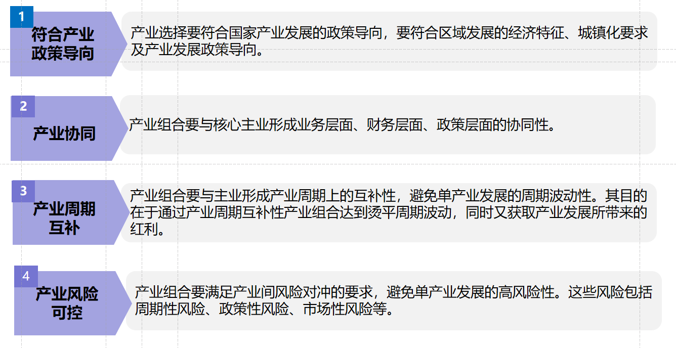 在內(nèi)外部環(huán)境分析和明確戰(zhàn)略定位的基礎(chǔ)上,進(jìn)行多元化戰(zhàn)略設(shè)計(jì),需符合政策導(dǎo)向,與主業(yè)高度協(xié)同,并形成周期互補(bǔ)、風(fēng)險(xiǎn)可控的產(chǎn)業(yè)布局。