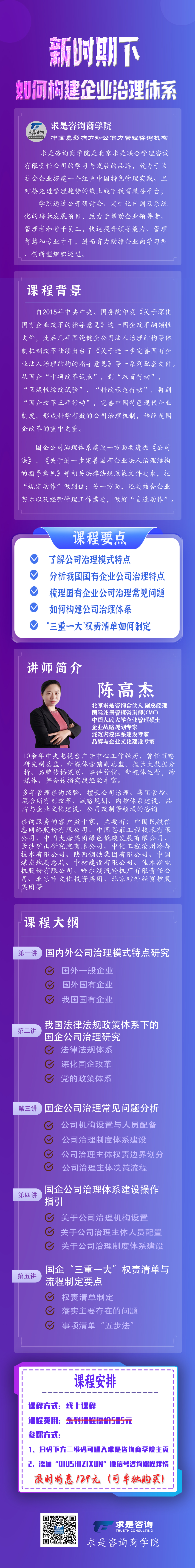 國企公司治理體系建設(shè)一方面要遵循《公司法》、《關(guān)于進(jìn)一步完善國有企業(yè)法人治理結(jié)構(gòu)的指導(dǎo)意見》等相關(guān)法律法規(guī)政策文件要求,把“規(guī)定動(dòng)作”做到位;另一方面,還要結(jié)合企業(yè)實(shí)際以及經(jīng)營管理工作需要,做好“自選動(dòng)作”。
