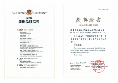 2012年9月9日,第7屆亞洲品牌盛典在香港迪士尼國(guó)際會(huì)議中心隆重揭幕。會(huì)上發(fā)布了“2012亞洲品牌500強(qiáng)排行榜”及相關(guān)獎(jiǎng)項(xiàng)。我咨詢(xún)公司榮獲“亞洲(行業(yè))十大公信力品牌獎(jiǎng)”,公司董事長(zhǎng)安林博士同時(shí)入選“中國(guó)(行業(yè))品牌十大領(lǐng)軍人物”。我司為亞洲管理咨詢(xún)界唯一獲此兩項(xiàng)殊榮的咨詢(xún)機(jī)構(gòu)。