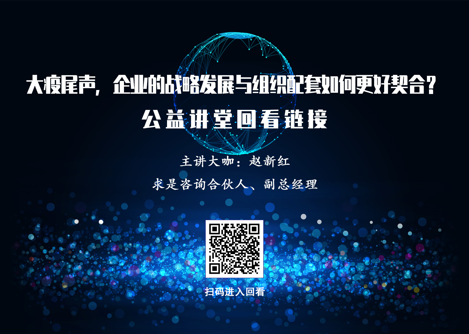 錯過直播的朋友,請進入求是咨詢《大疫尾聲,企業(yè)的戰(zhàn)略發(fā)展與組織配套如何更好契合?》公益講堂直播回看,精彩不容再失!
