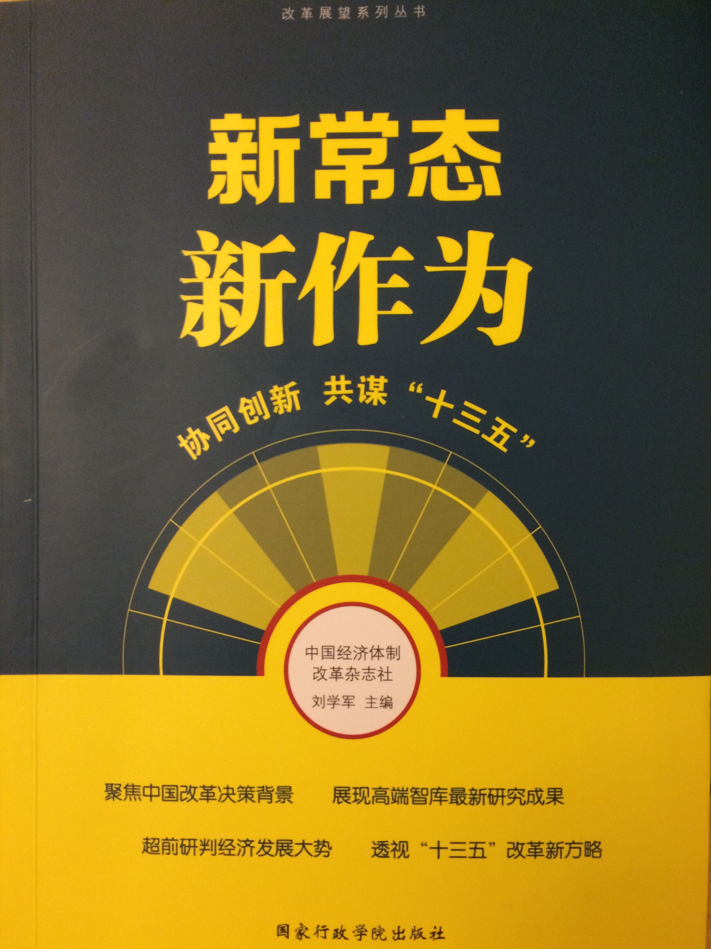 日前,我司董事長安林博士的論文“國有資產(chǎn)管理與國企治理”(2.2萬字),被中國經(jīng)濟(jì)體制改革雜志社編著、國家行政學(xué)院出版社出版的改革展望系列叢書《新常態(tài)新作為》所收錄。論文內(nèi)容主要來源于作者近些年發(fā)表于《改革內(nèi)參》的若干重要論文或報(bào)告。該書以協(xié)同創(chuàng)新、共謀“十三五”為特色,旨在聚焦中國改革決策背景,展現(xiàn)高端智庫最新研究成果,超前研判經(jīng)濟(jì)發(fā)展大勢,透視“十三五”改革新方略。該書由著名經(jīng)濟(jì)學(xué)家、原國家發(fā)改委副主任高尚全作序。