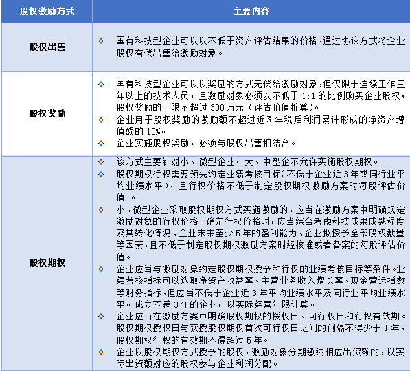 根據(jù)《關(guān)于印發(fā)國(guó)有科技型企業(yè)股權(quán)和分紅激勵(lì)暫行辦法的通知》(財(cái)資【2014】4號(hào))一文,對(duì)國(guó)有科技型企業(yè)有以下說明:“本辦法所稱股權(quán)激勵(lì),是指國(guó)有科技型企業(yè)以本企業(yè)股權(quán)為標(biāo)的,采取股權(quán)出售、股權(quán)獎(jiǎng)勵(lì)、股權(quán)期權(quán)等方式,對(duì)企業(yè)重要技術(shù)人員和經(jīng)營(yíng)管理人員實(shí)施激勵(lì)的行為。”