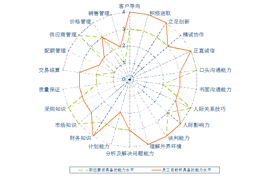 3、專業(yè)能力素質(zhì):履行一個工作崗位或角色所必須具備的產(chǎn)品、服務(wù)、步驟流程及技術(shù)應(yīng)用的知識和技能,其特點主要體現(xiàn)在知識與技能基本能力素質(zhì)的組合,此類能力素質(zhì)較易獲得,但可能僅適用于序列內(nèi)的部分崗位。