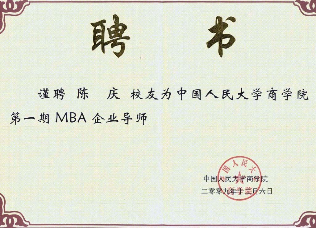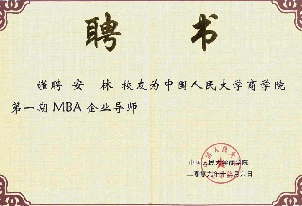 2009年12月6日,我司總裁安林博士、副總裁陳慶博士分別獲聘中國(guó)人民大學(xué)首批MBA企業(yè)導(dǎo)師。