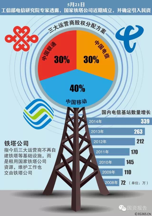 中國的電信業(yè)數(shù)歷分合,三大運營商的惡性競爭無法避免。2014年,電信三大運營商合資中國通信設施服務股份有限公司,即俗稱的“鐵塔公司”。此前,三大運營商為建鐵塔而爭奪地盤,造成大量重復建設、資源浪費、成本壓力,而又不能滿足4G時代的需要。鐵塔公司雖還有待完善,但其成立后已有效緩解了三家在這方面的惡性競爭。