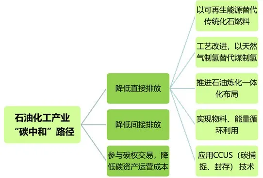 石油化工產(chǎn)業(yè)“碳中和”的主要路徑是高碳轉低碳、技術創(chuàng)新、循環(huán)利用、碳權交易方式。