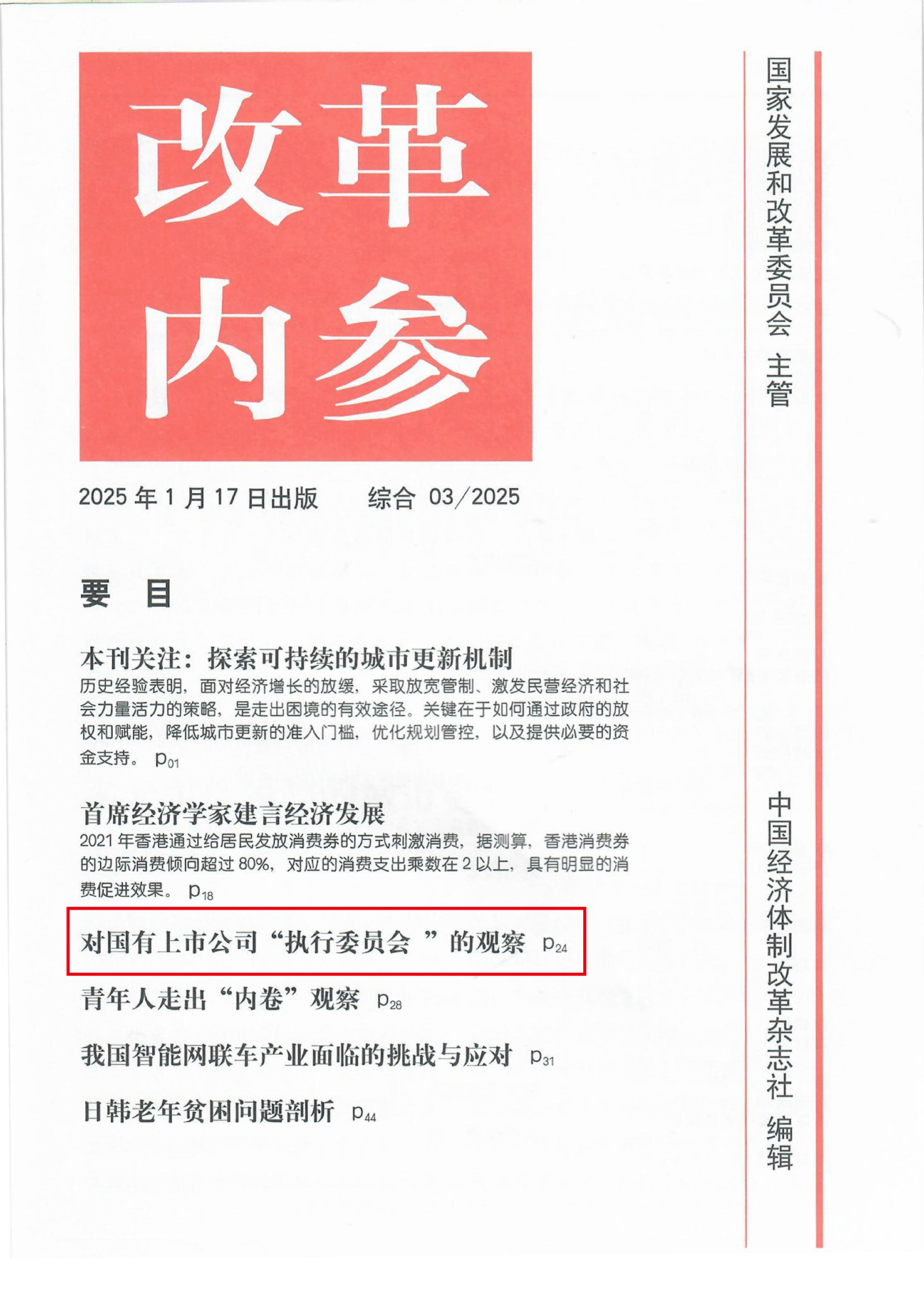 2025年01月17日,求是咨詢董事長安林博士撰文《對(duì)國有上市公司“執(zhí)行委員會(huì)”的觀察》刊發(fā)于《改革內(nèi)參》。文章原文可關(guān)注“求是咨詢”官方微信公眾號(hào)進(jìn)行閱讀。