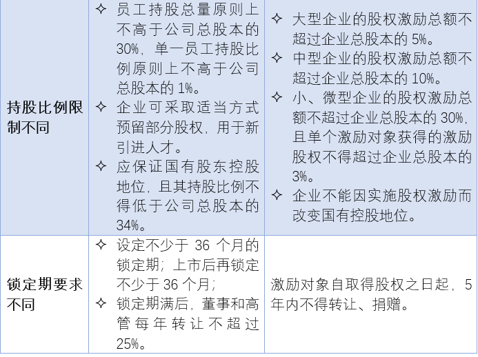 值得注意的是,結(jié)合《企業(yè)國有資產(chǎn)交易監(jiān)督管理辦法》中關(guān)于國有控股企業(yè)及國有實際控制企業(yè)的定義,從保障國有控股地位的角度,實施員工持股后,國有股東持股比例除了不得低于總股本的34%以外,還應保證其為第一大股東。