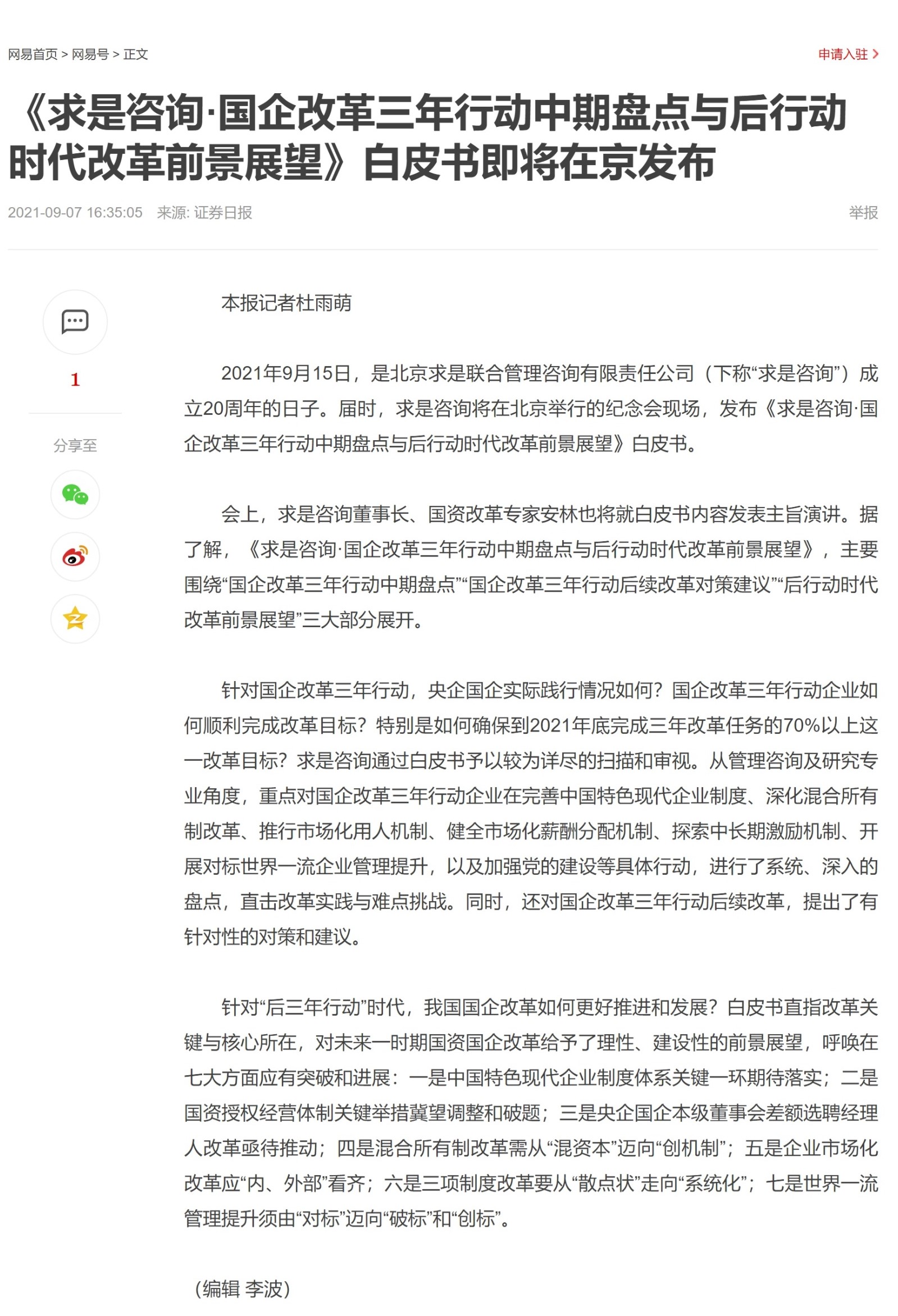 《網(wǎng)易》:《求是咨詢·國(guó)企改革三年行動(dòng)中期盤點(diǎn)與后行動(dòng)時(shí)代改革前景展望》白皮書(shū)即將在京發(fā)布