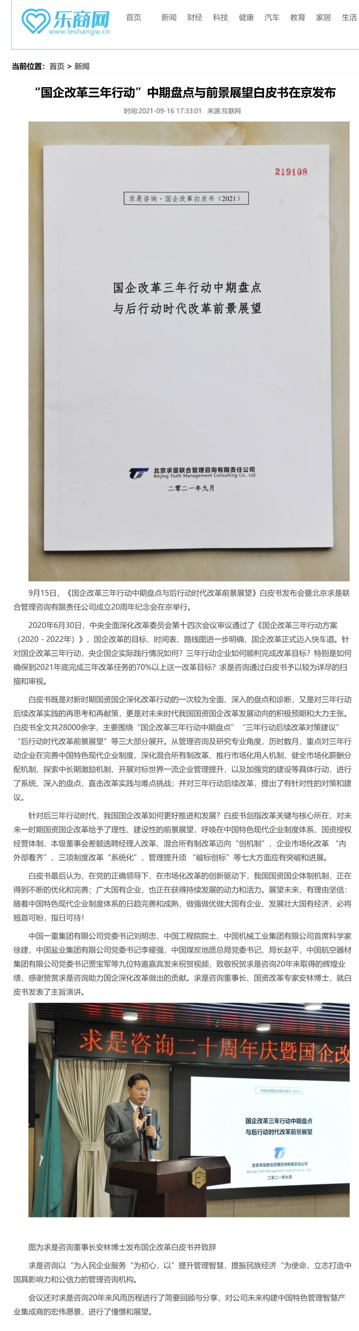 《樂(lè)商網(wǎng)》:“國(guó)企改革三年行動(dòng)”中期盤(pán)點(diǎn)與前景展望白皮書(shū)在京發(fā)布