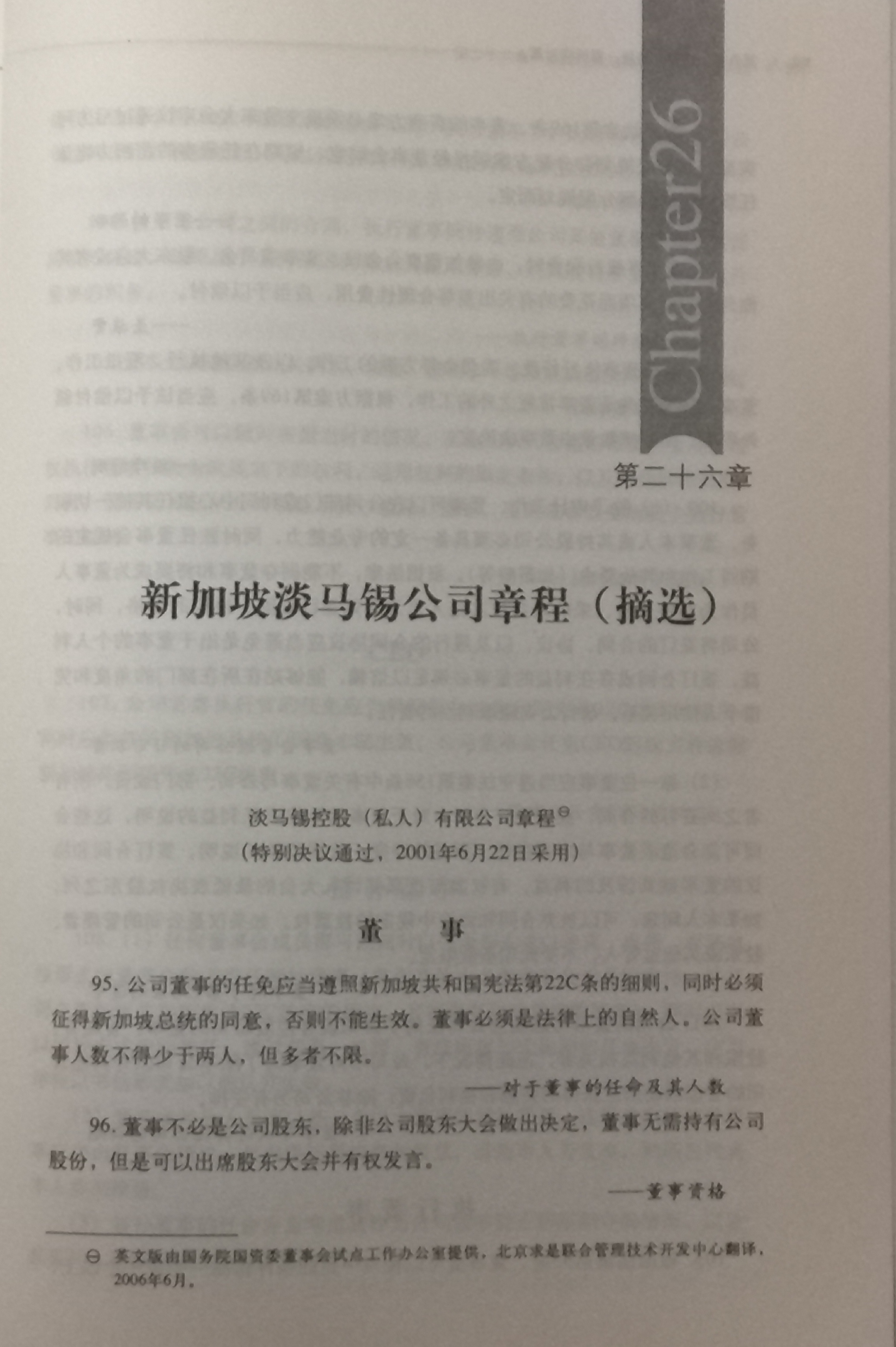 2005年底,求是咨詢受國務(wù)院國資委邀請,翻譯研究《新加坡淡馬錫控股(私人)有限公司章程》,該章程,又稱“憲章,由內(nèi)設(shè)于國資委改革局的中央企業(yè)董事會試點辦公室具體負責(zé)。