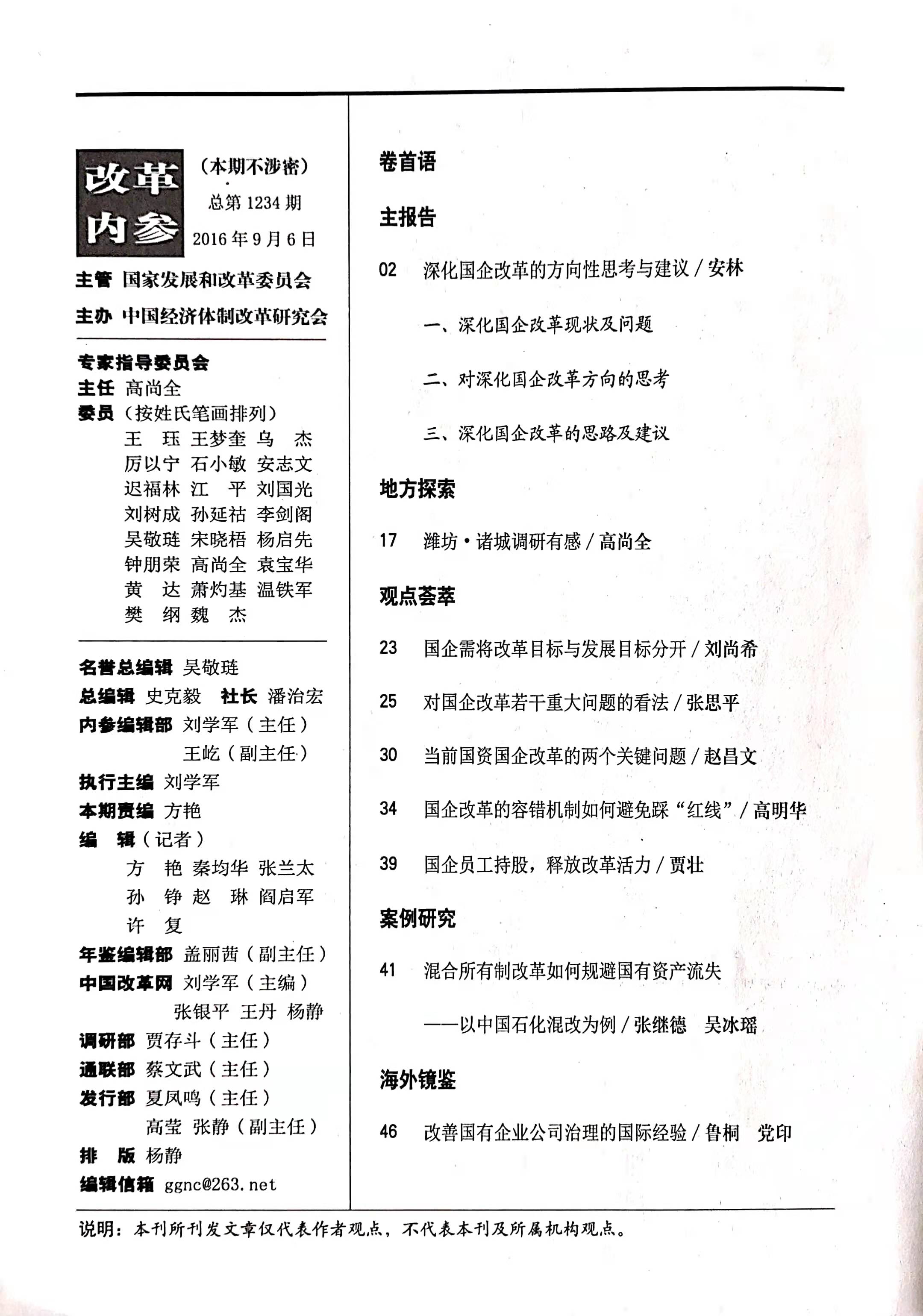 研究報(bào)告全文1.4萬(wàn)字,作為主報(bào)告,發(fā)表于2016年9月6日出版的《改革內(nèi)參》高層報(bào)告。