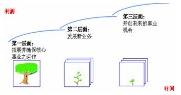 人無遠慮必有近憂,要想持續(xù)的發(fā)展,企業(yè)必須做到吃著嘴里的、占著碗里的、惦記著鍋里的、尋思著地里的。企業(yè)必須不斷地開展促進業(yè)務增長的各種活動,將未來業(yè)務放到與當前業(yè)務同等重視程度的位置上來,并且在未來業(yè)務和當前業(yè)務之間求得一種平衡。比如,麥肯錫提出的三層次模型,說的就是這個意思。