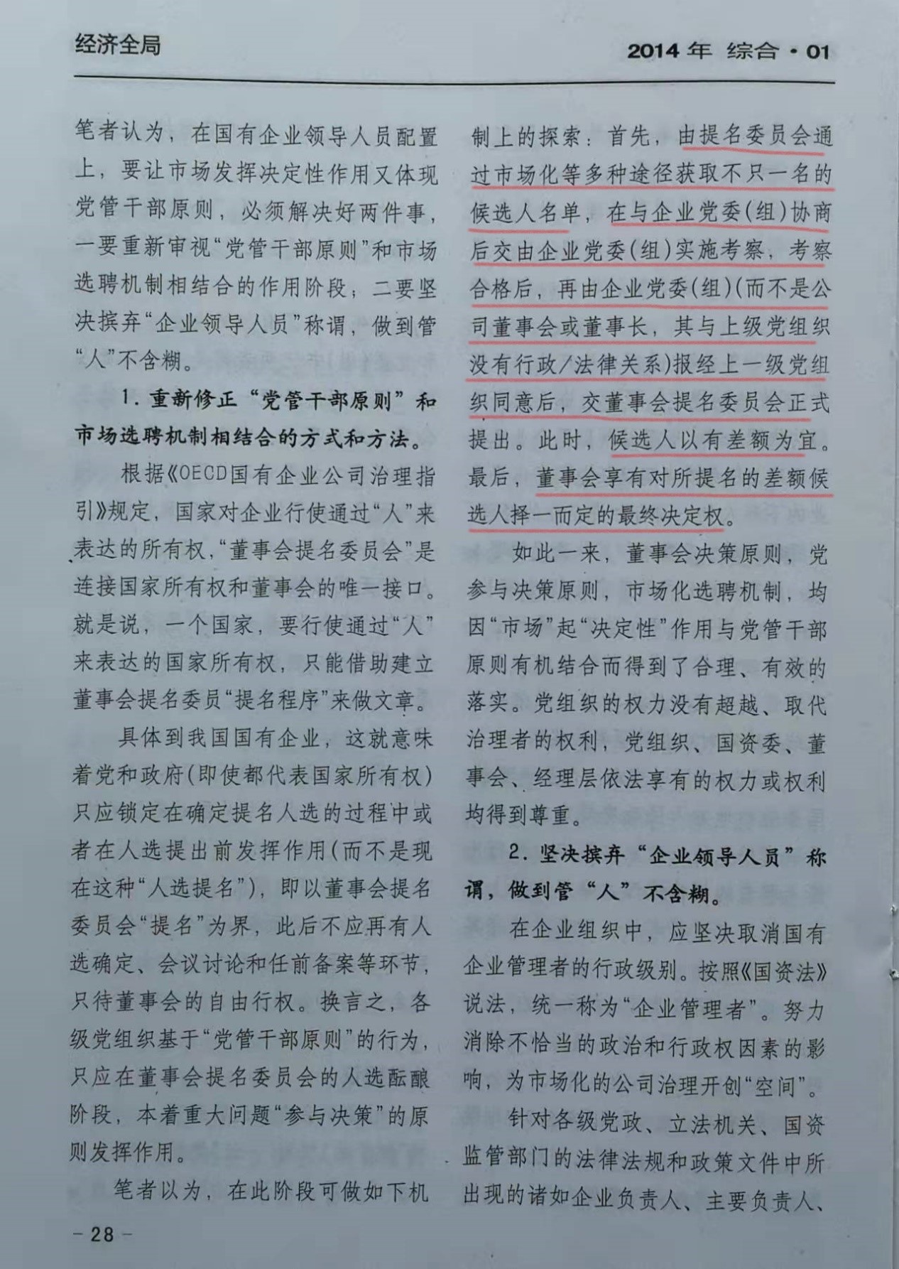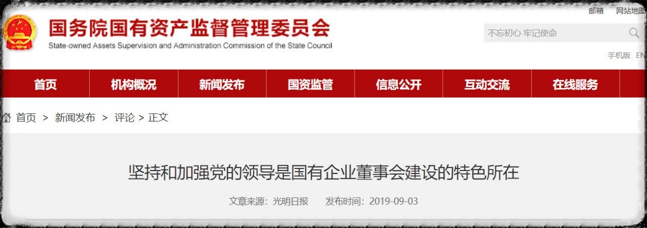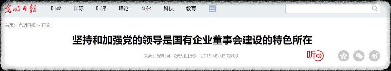 10. 發(fā)表(《光明日報》)文章《堅持和加強黨的領(lǐng)導(dǎo)是國有企業(yè)董事會建設(shè)的特色所在》經(jīng)濟學(xué)理論專版(隨后被人民網(wǎng)/中國共產(chǎn)黨新聞網(wǎng)、 黨建網(wǎng)、國務(wù)院國有資產(chǎn)管理委員會官方網(wǎng)站轉(zhuǎn)載)。