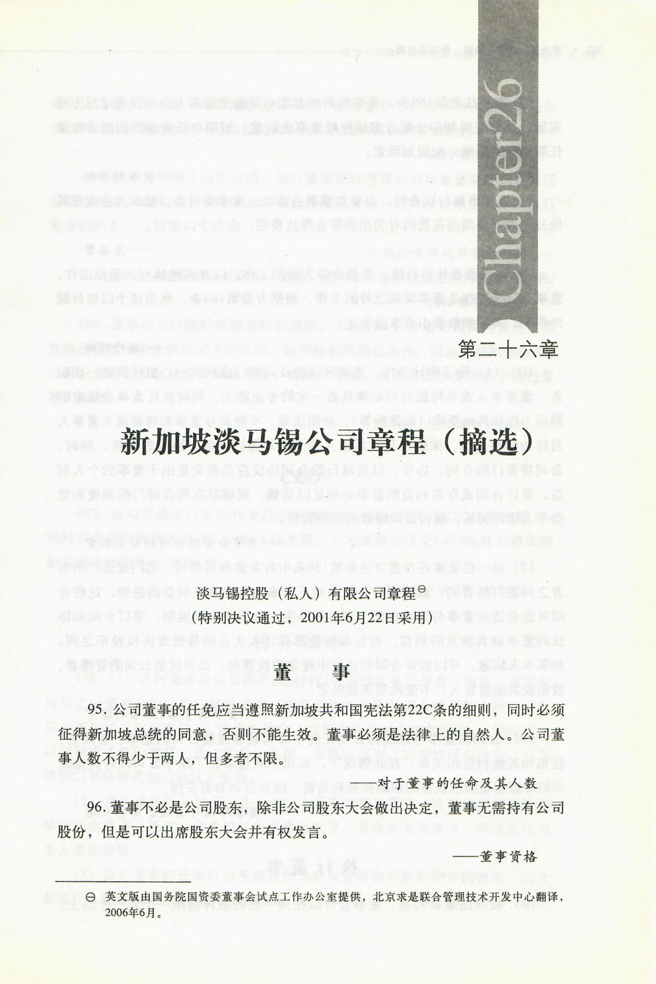 1.國企董事會試點初期,受國務(wù)院國資委改革局董事會試點辦公室委托,主持翻譯并研究《新加坡淡馬錫控股(私人)有限公司章程》;