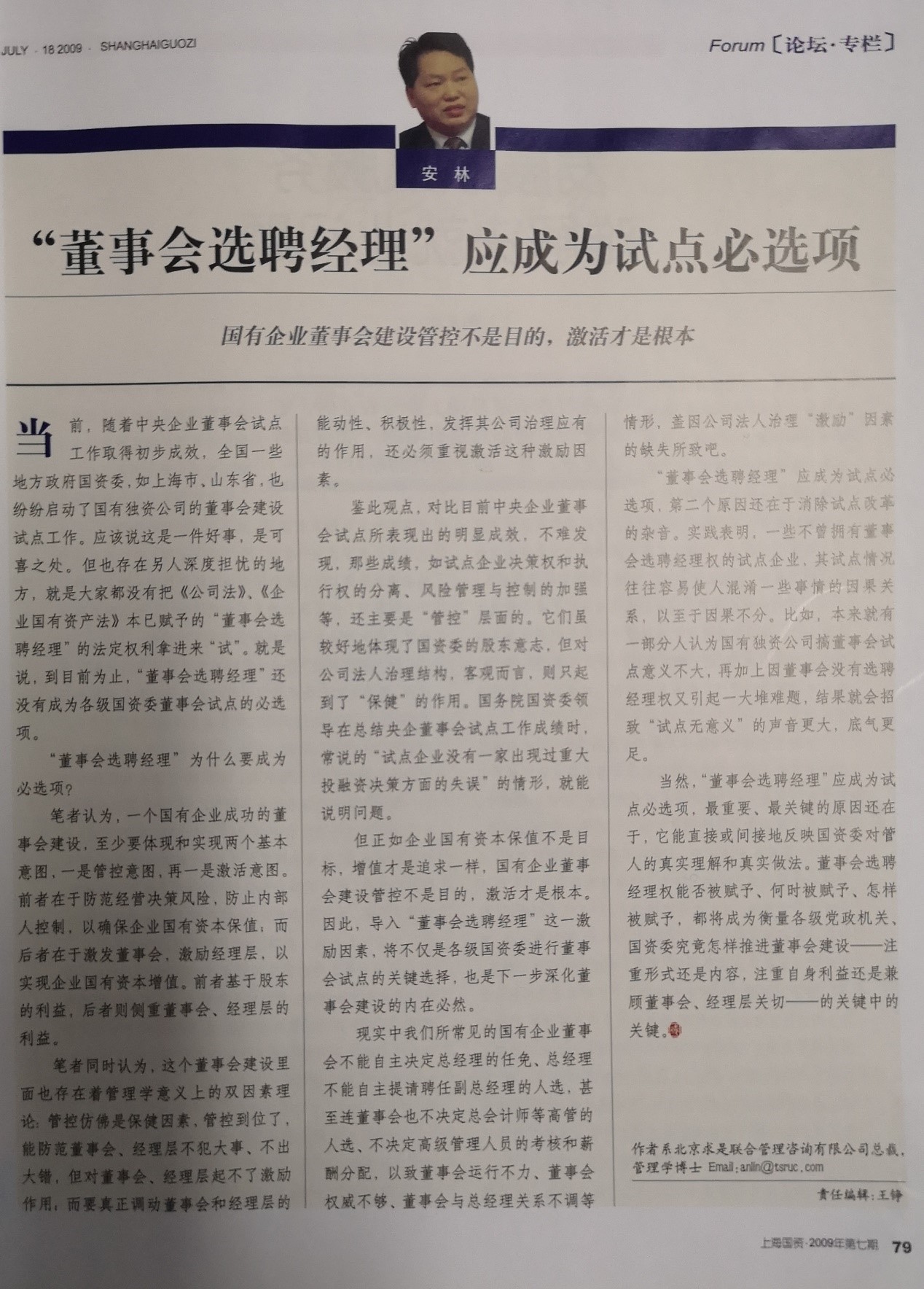 4.求是咨詢董事長安林博士受邀《上海國資》四年(2007-2011)發(fā)表“董事會”主題“專欄”文章等近百篇。