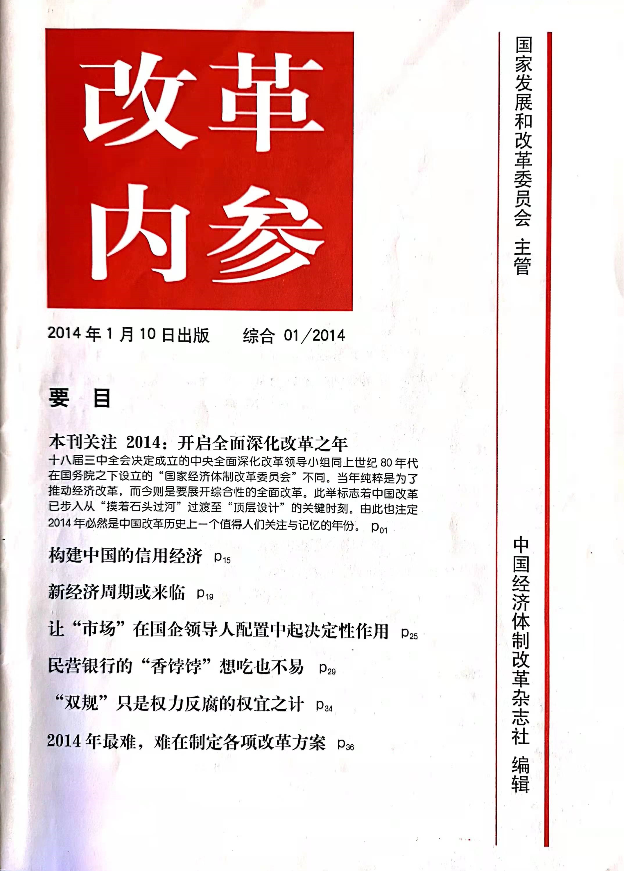 2014年1月,求是咨詢董事長、《改革內(nèi)參》特約研究員安林博士特邀在《改革內(nèi)參》(綜合01/24)發(fā)表了一篇重要文章:《讓“市場”在國企領(lǐng)導(dǎo)人配置中起決定性作用》。文中通過研究大膽提出“讓董事會差額選聘經(jīng)理人”的改革主張。后又通過建言和提案等形式積極向上反映。