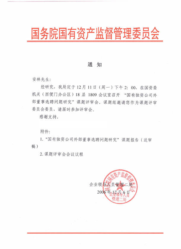5.受邀國務(wù)院國資委評審《外部董事選聘研究》課題(2006);