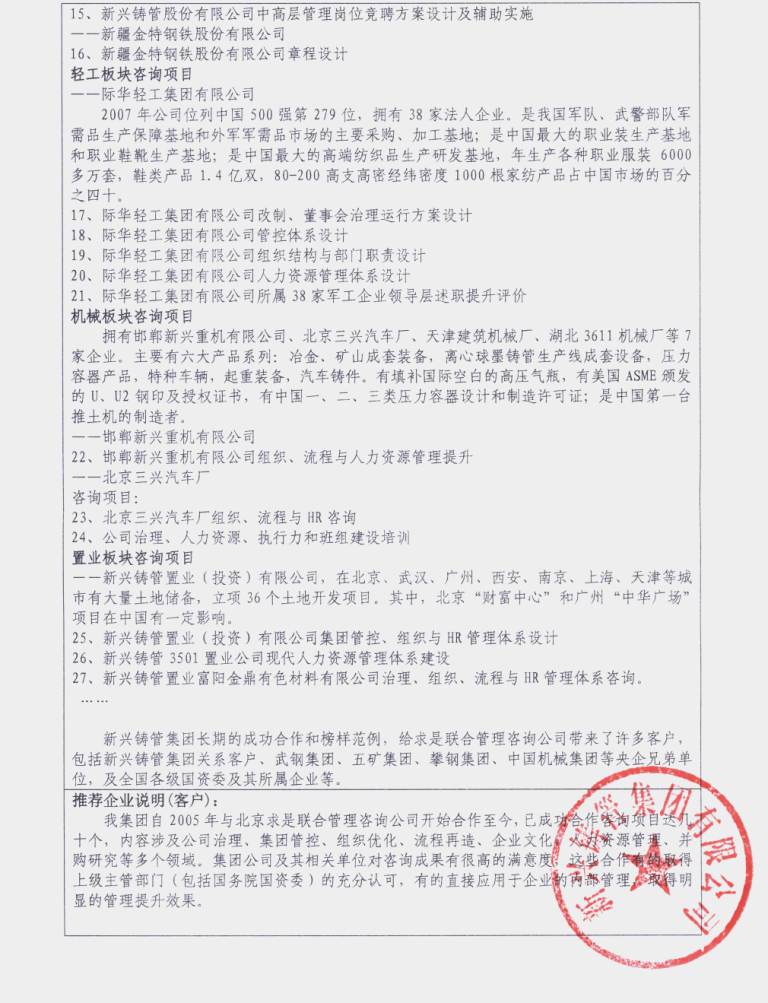 1、新興鑄管集團(tuán)有限公司 2、勁牌有限公司 3、南方醫(yī)科大學(xué)南方醫(yī)院 4、九禾股份有限公司 5、南陽二機(jī)石油裝備(集團(tuán))有限公司 6、天津市建設(shè)投資有限公司 6、環(huán)球石材集團(tuán) 7、重慶長安股份有限公司 8、江蘇聯(lián)發(fā)紡織股份有限公司 9、青島啤酒股份有限公司 10、海南省農(nóng)墾總局/海南省農(nóng)墾總公司 10、聯(lián)建建設(shè)投資有限公司