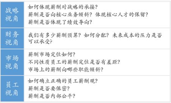 明確薪酬設(shè)計(jì)需要關(guān)注的重點(diǎn)——從戰(zhàn)略、員工、市場(chǎng)及財(cái)務(wù)四個(gè)維度全面評(píng)估現(xiàn)有薪酬體系。薪酬激勵(lì)的核心在于通過(guò)對(duì)薪酬體系的設(shè)定,激發(fā)員工工作積極性從而實(shí)現(xiàn)公司經(jīng)營(yíng)目標(biāo)。