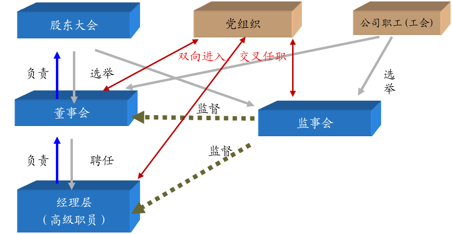 3、確立黨委(組)成員通過“雙向進(jìn)入,交叉任職”進(jìn)入董事會(huì)發(fā)揮作用;