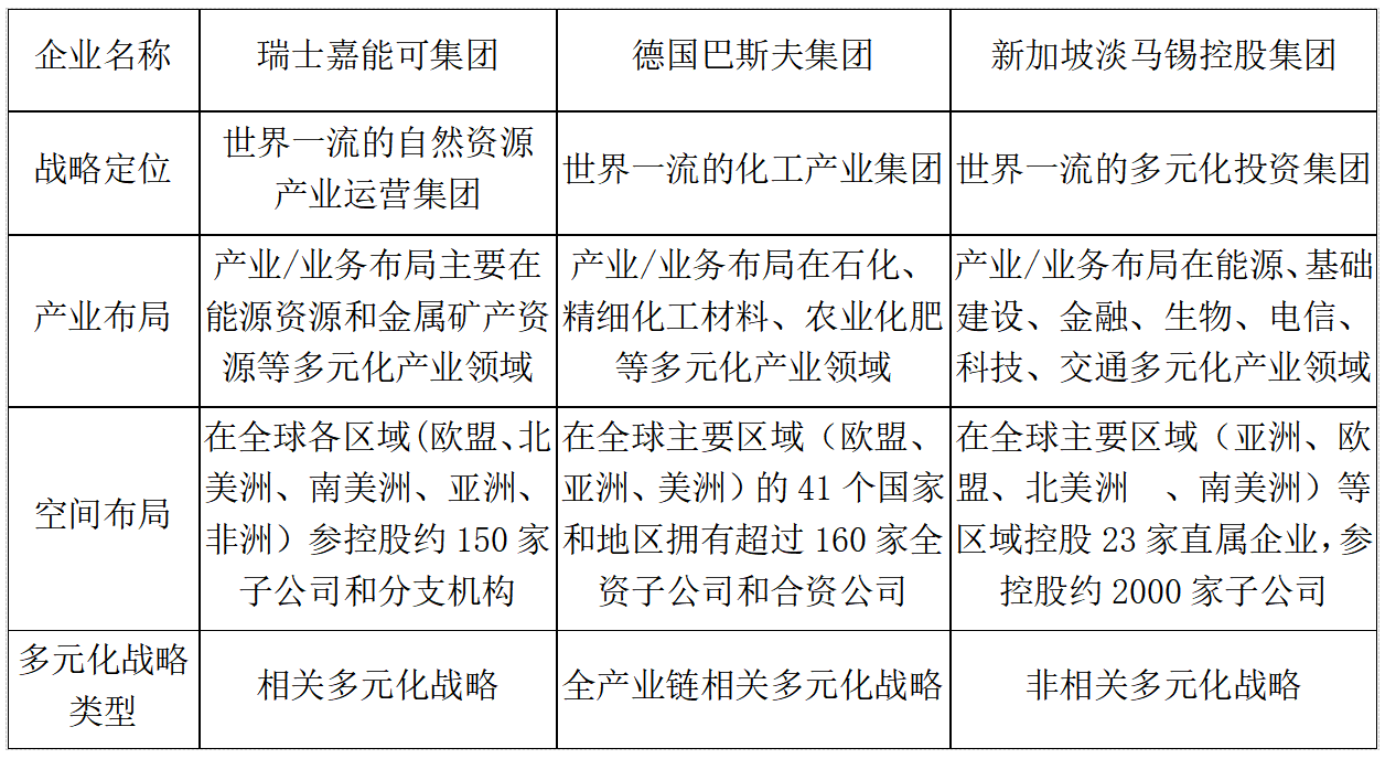 本文選取瑞士嘉能可集團(tuán)公司、德國(guó)巴斯夫集團(tuán)公司、新加坡淡馬錫集團(tuán)公司等兩類、三家世界一流標(biāo)桿企業(yè),開(kāi)展多元化戰(zhàn)略的對(duì)標(biāo)分析,從中提煉出大企業(yè)集團(tuán)如何更好開(kāi)展多元化戰(zhàn)略的借鑒與啟示(見(jiàn)下表),分述如下。
