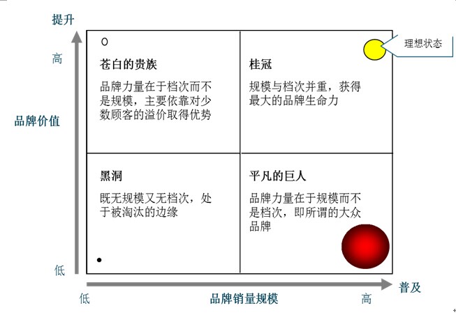 品牌價值和品牌銷量兩個維度構(gòu)成四個象限: