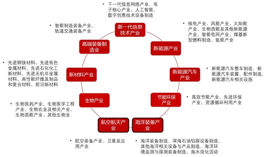 為發(fā)揮戰(zhàn)略性新興產業(yè)引擎作用,國家發(fā)改委等部門印發(fā)了《關于擴大戰(zhàn)略性新興產業(yè)投資 培育壯大新增長點增長極的指導意見》(發(fā)改高技〔2020〕1409號),針對各大產業(yè)提出了聚焦重點產業(yè)投資領域;國務院國資委圍繞加快發(fā)展戰(zhàn)略性新興產業(yè)進行了密集部署,相關政策、專項行動方案等為企業(yè)明晰戰(zhàn)略性新興產業(yè)布局指明了方向。