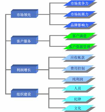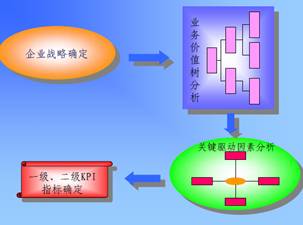 關鍵成功要點分析,就是要尋找一個企業(yè)成功的關鍵要點是什么,并對于企業(yè)成功的關鍵要點進行重點監(jiān)控。通過尋找企業(yè)成功的關鍵,層層分解從而選擇考核的KPI指標;舅枷胧峭ㄟ^分析企業(yè)獲得成功或取得市場領先地位的關鍵因素是什么,由此提煉出導致成功的關鍵業(yè)績模塊(又稱為“KPI維度”);再把業(yè)績模塊層層分解為關鍵要素,為了便于對這些要素進行量化考核與分析,要把要素細分為各項指標,即KPI指標。