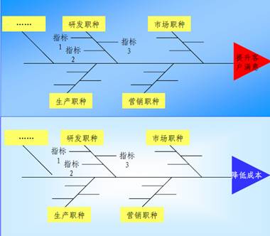 1)通過魚骨圖分析,尋找企業(yè)成功關鍵要素,即確定企業(yè)KPI維度,也就是明晰要獲得優(yōu)秀的業(yè)績所必須的條件和要實現(xiàn)的目標;