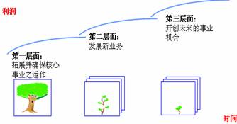 人無遠慮必有近憂,要想持續(xù)的發(fā)展,企業(yè)必須做到吃著嘴里的、占著碗里的、惦記著鍋里的、尋思著地里的。企業(yè)必須不斷地開展促進業(yè)務(wù)增長的各種活動,將未來業(yè)務(wù)放到與當前業(yè)務(wù)同等重視程度的位置上來,并且在未來業(yè)務(wù)和當前業(yè)務(wù)之間求得一種平衡。比如,麥肯錫提出的三層次模型,說的就是這個意思。